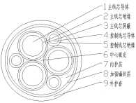 3、內(nèi)護(hù)套層與外護(hù)套間有一層芳綸絲編織,提高電纜機(jī)械性能。